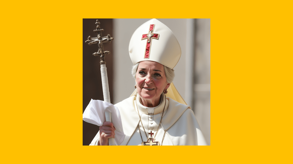 But…just as a disturbing and frivolous little exercise, let’s just imagine (for entertainment purposes only!) how such a bizarre scenario might play out. Such a mental exercise seems like it would do well in a comic book format. So, without further ado, we present to you “The Adventures of Pope Karen.”